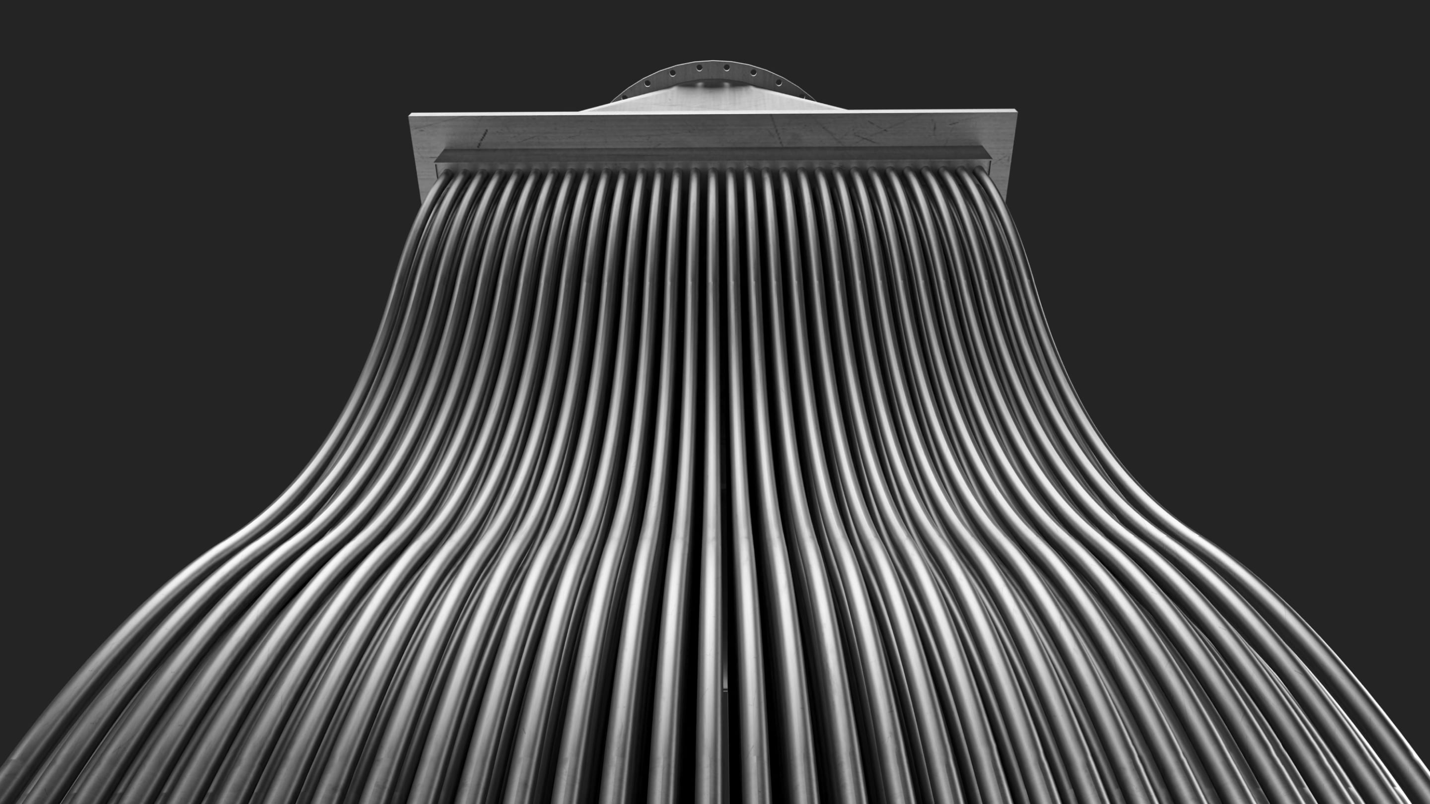 Die lyra-förmigen Rohre charakterisieren die Rekuperatoren von Peiler und geben der Formsprache eine eigene Ästhetik. Daraus entsteht die Basis für Produktdarstellung und interessanter Bildwelt.